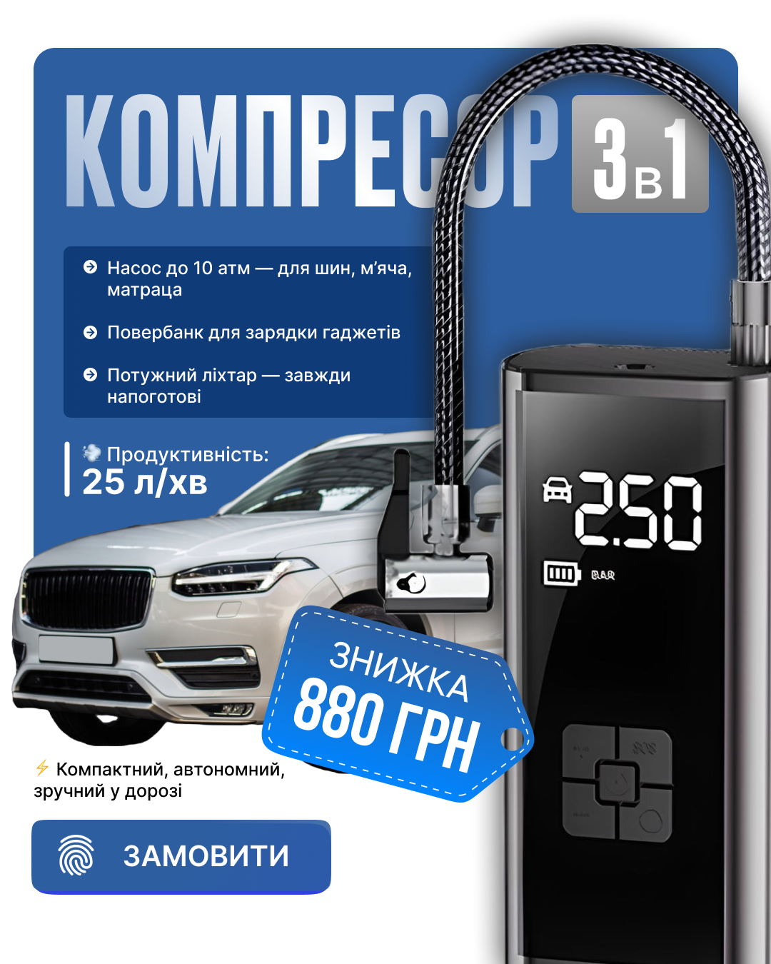 🔋 Потужний бездротовий компресор 6000 мА·г