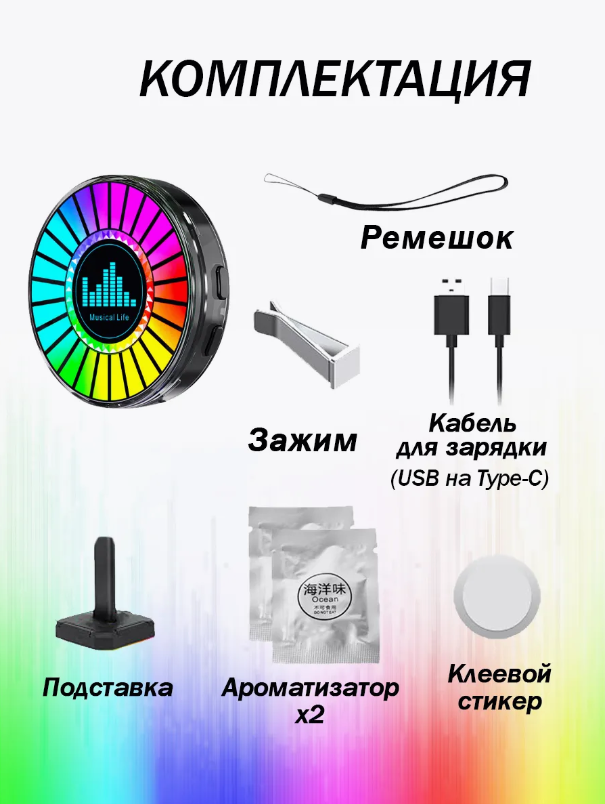 🎵 Реакція на музику — підсвітка синхронізується з ритмом мелодій.